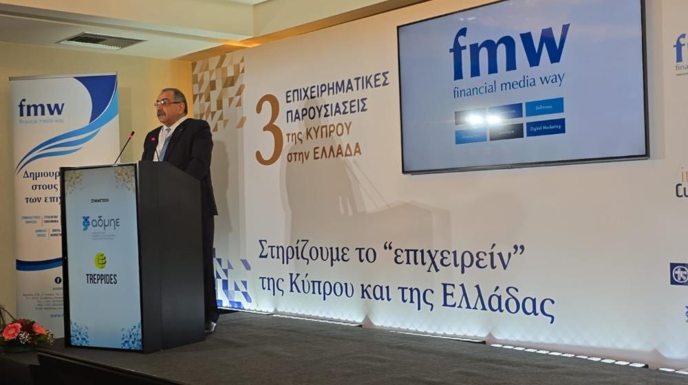 In his address, CCCI President Stavros Stavrou said the Chamber places great importance on the development and expansion of business relations between Cyprus and Greece.