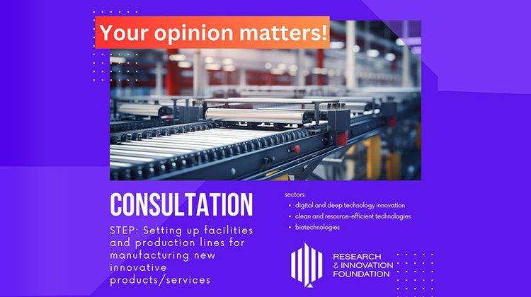The Research and Innovation Foundation (RIF) has announced the start of the consultation process for the new financing programme 'STEP: Setting up of facilities and production lines for manufacturing new innovative products/services.'