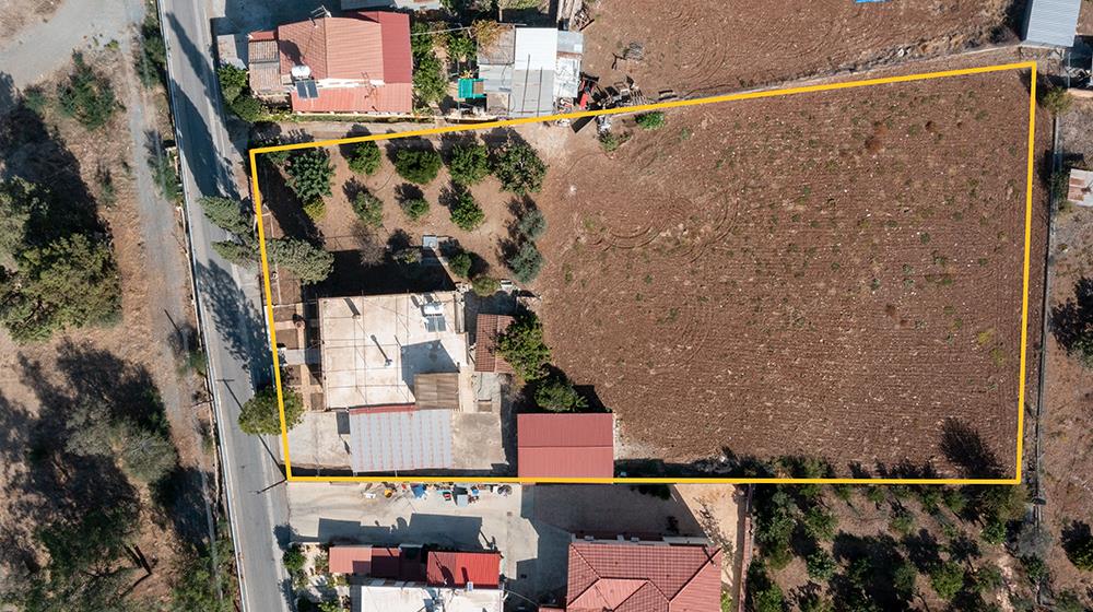 The property lies within the administrative boundaries of Ayios Ioannis community, about 18km southwest of Nicosia. It borders Kyriakou Matsi Street with a frontage of 40m and comprises of a kitchen, living room, bathroom and two bedrooms. Externally there is a big yard, storeroom, and covered parking space.