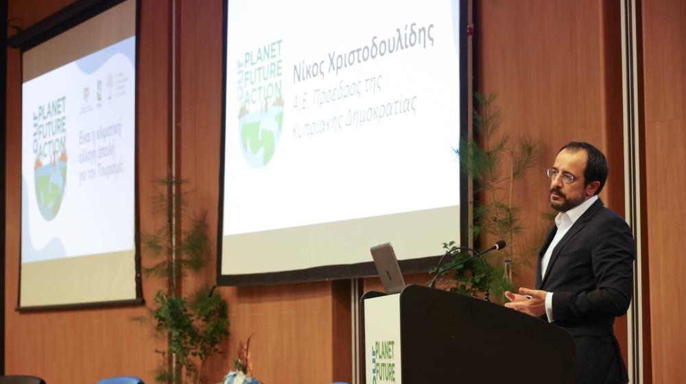 In his address at the opening of the conference, President Christodoulides said that climate change is an issue that concerns the entire planet and all of humanity, adding that it is a huge challenge for tourism, but also an opportunity for those countries that will manage to benefit both in the tourism sector and in many other areas.