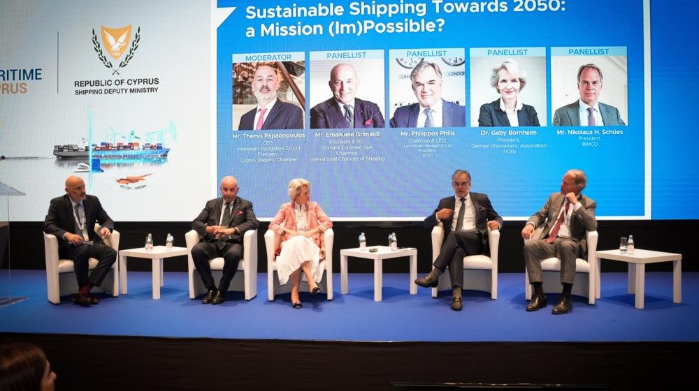 The discussion was moderated by Themis Papadopoulos, the President of the Cyprus Shipping Chamber, featuring high level speakers such as Emanuele Grimaldi, Chairman of the International Chamber of Shipping (ICS), Philippos Philis, President of the European Community Shipowners' Associations (ECSA), Gaby Bornheim, President of the German Shipowners' Association (Verband Deutscher Reeder - VDR), and Nikolaus H. Schües, President of the Baltic and International Maritime Council (BIMCO).