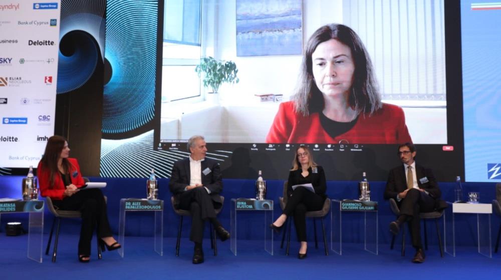 Moderated by Natasa Pilides, Former Minister for Energy, Commerce, and Industry, the panel consisted of Dr Yolanda Garcia Mezquita, Head of the Unit TF 2, Directorate-General for Energy of the European Commission; Dr Alex Papalexopoulos, Founder and CEO of ECCO International, Inc, CEO and Chairman of the Board of ZOME Energy Networks, Inc, USA; Irina Kustova, Research Fellow, CEPS, Belgium; and Gianpaolo Giuseppe Giuliani, Chief Commercial Officer, Sunlight Group Energy Storage Systems.