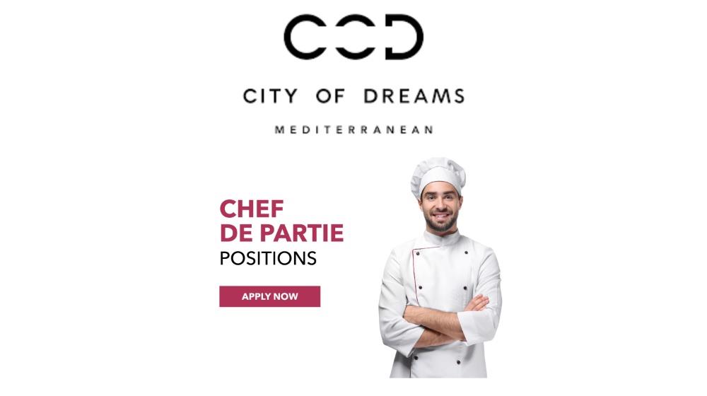 New vacancies have opened at City of Dreams Mediterranean for the position of Chef de Partie, with an annual salary of €31,200, attractive benefits and a 40-hour work week.