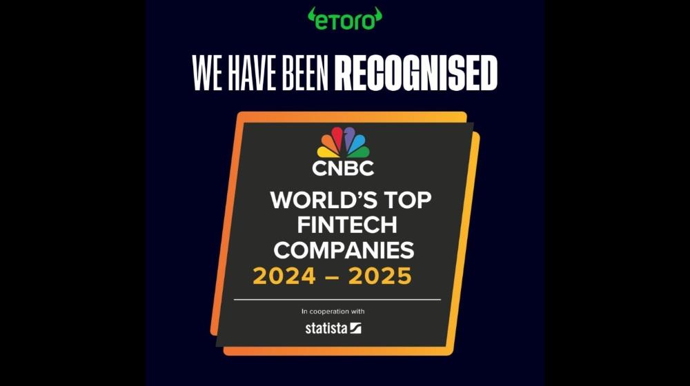The list compiled by CNBC and Statista recognises the top 300 fintech companies globally across seven market sectors, with eToro featuring in the wealth technology segment.