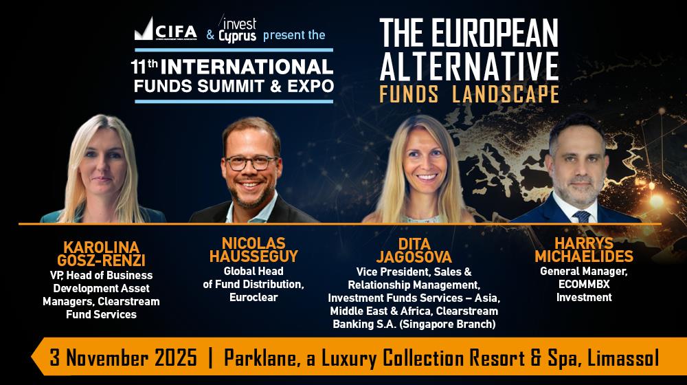 At this year’s 11th International Funds Summit & Expo, taking place on 2–3 November 2025 at the Parklane, a Luxury Collection Resort & Spa in Limassol, the panel “AIFs: Capital Raising & Cross-Border Distribution” will bring together four industry leaders who are rewriting the rules of global capital flow: Karolina Gosz-Renzi (Clearstream Fund Services), Nicolas Hausseguy (Euroclear), Dita Jagosova (Clearstream Singapore), and Harrys Michaelides (ECOMMBX Investment).