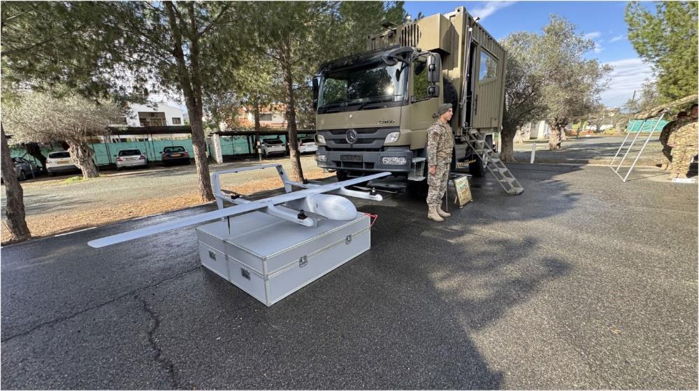 The unmanned system delivered to the National Guard is of Cypriot manufacture and origin, has the ability to perform vertical takeoff and landing, a maximum operating range of 50 kilometers, and the ability to perform day and night targeting and for artillery fire corrections.