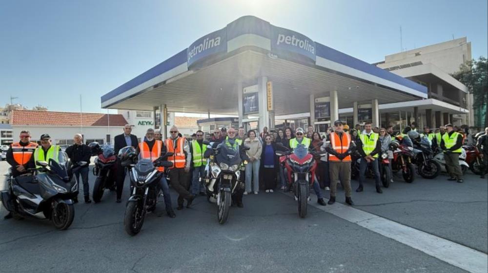 On Thursday, 12 March 2026, the “Love Route” convoy of motorcyclists visited the Petrolina service station on Kilkis street, at the company’s headquarters in Larnaka, where they received a warm welcome from members of the management and personnel.