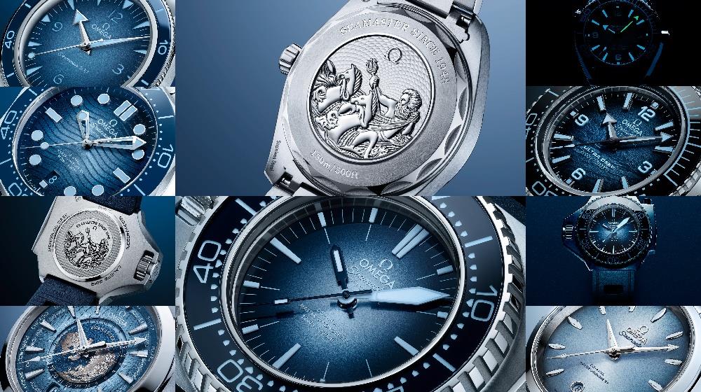 The seven iconic models - eleven watches in all – track a trajectory from dressy to serious dive tech. Common to all is OMEGA's Summer Blue, used in greater or lesser degrees to reflect the water resistance of each Seamaster and relate its depth-defying credentials at a glance: Aqua Terra represents the sun-drenched surface, Ultra Deep the dark abyss.
