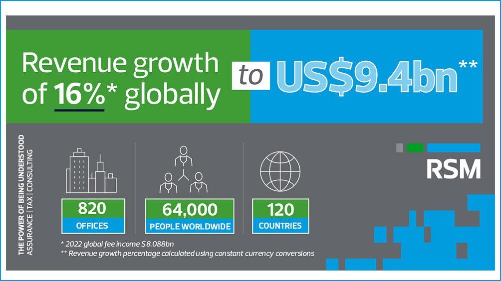 It comes as RSM announced worldwide revenues of US$9.4* billion for the 12 months to December 2023, a year-on-year growth of 16%.