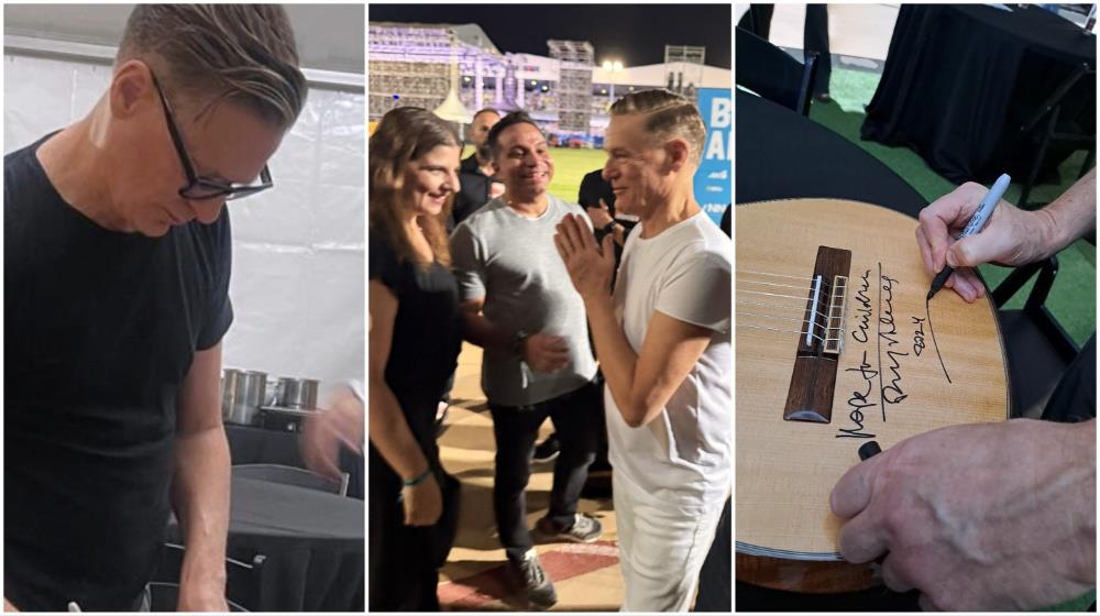 Bryan Adams signs guitar to be auctioned for Hope For Children
